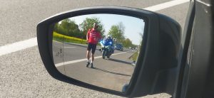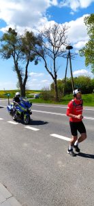 Biegliśmy razem już kilka kilometrów, ja swoim równym krokiem, on tuż obok mnie, majestatycznie na swoim motorze. Mateusz, bo tak miał na imię mój policyjny anioł stróż, nagle zasygnalizował: